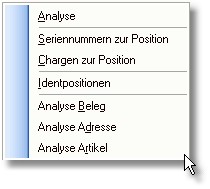 Über den Button <Auswertung> oder mit der Taste [RETURN] öffnet sich ein Popup-Menü mit folgenden Analysemöglichkeiten: