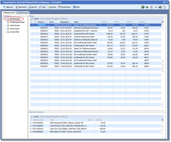 So können Sie Bestellbelege bearbeiten