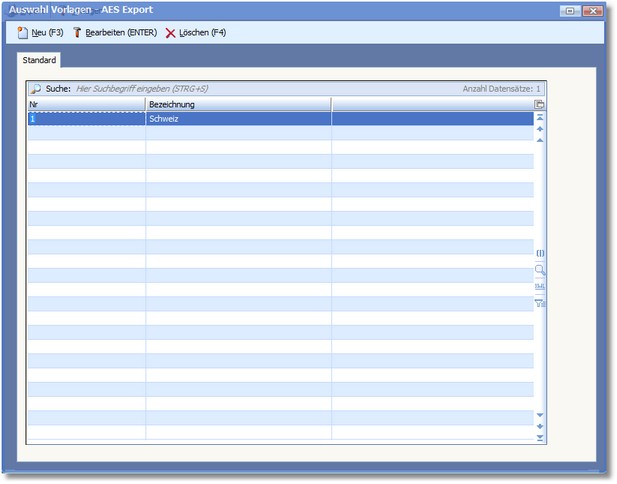 << Hier KLicken um eine Inhaltsübersicht anzuzeigen >> Navigation: Warenwirtschaft > Extras > Ausfuhr/AES-Anbindung > Ausfuhr/AES-Anbindung > AES - Grundeinstellungen > Vorlagen |