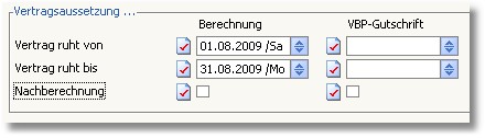 Da der Vertrag in unserem Beispiel für den Monat August ausgesetzt werden soll, tragen Sie hier mit Hilfe der [F5]-Taste folgende Werte ein: