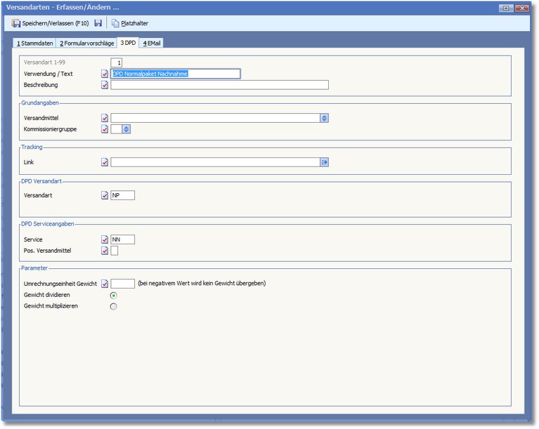 << Hier KLicken um eine Inhaltsübersicht anzuzeigen >> Navigation: Warenwirtschaft > Lagerverwaltung > Lager/Logistikcenter > Logistiker "DPD" (DELISprint) > Beispiel 1 |