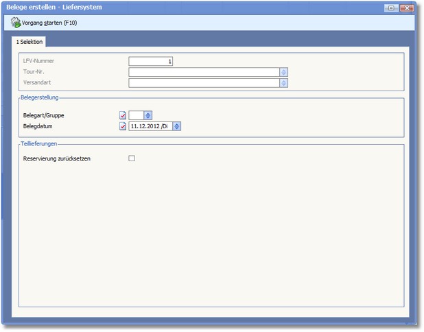 Hier können Sie hier die zu erstellende Belegart und die Beleggruppe angeben.