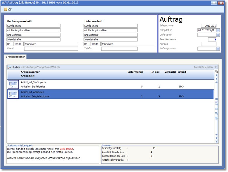 << Hier KLicken um eine Inhaltsübersicht anzuzeigen >> Navigation: Warenwirtschaft > Lagerverwaltung > Lager/Logistikcenter > Packstation > Übersicht offene Aufträge > Details zum Auftrag |