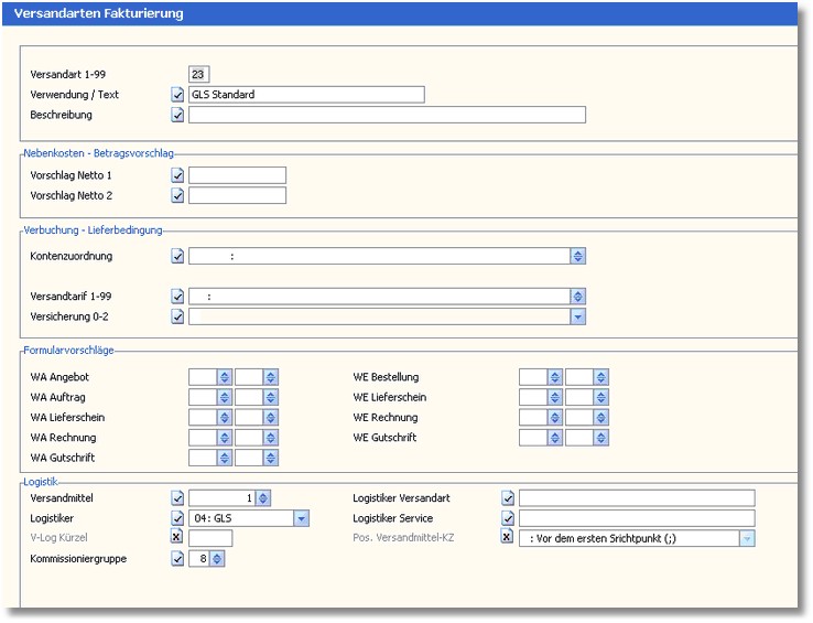<< Hier KLicken um eine Inhaltsübersicht anzuzeigen >> Navigation: Warenwirtschaft > Lagerverwaltung > Lager/Logistikcenter > Logistiker "GLS" (Gepard) > GLS-Versandart bis Version 5.42 |