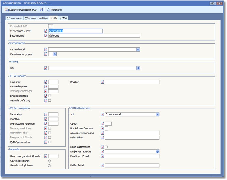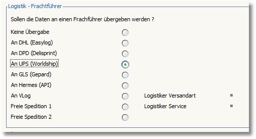 << Hier KLicken um eine Inhaltsübersicht anzuzeigen >> Navigation: Warenwirtschaft > Lagerverwaltung > Lager/Logistikcenter > Logistiker "UPS" (Worldship) |