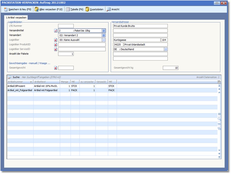 Navigation:  Warenwirtschaft > Lagerverwaltung > Lager/Logistikcenter > Packstation > Verpacken >