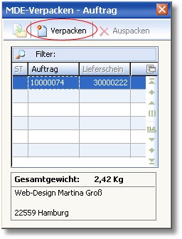 Dieser Symbolbutton startet den Verpackungsdialog für den in der Auswahltabelle markierten Auftrag.